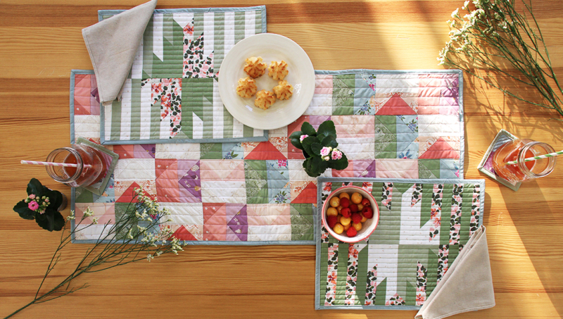 Køb stoffer der passer til dit mønster her eller find andre søde pre cut stoffer her. Derud over har vi romantiske patchwork stoffer som passer perfekt til denne dækkeserviet.