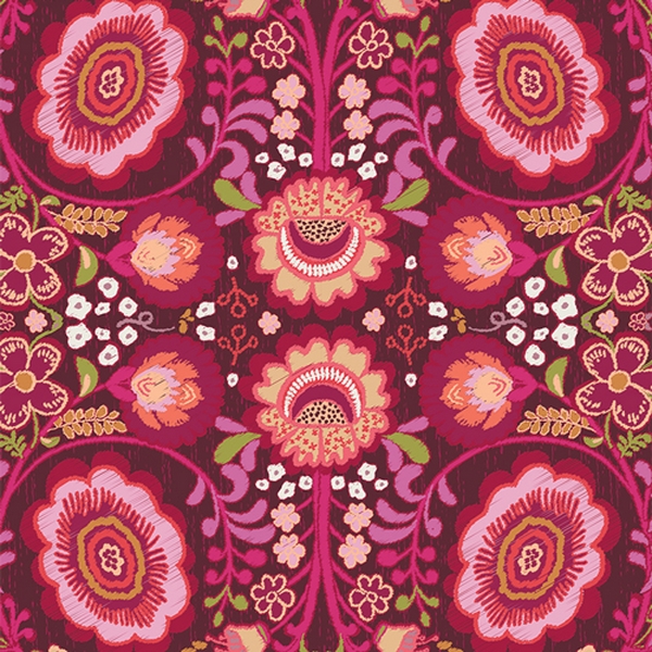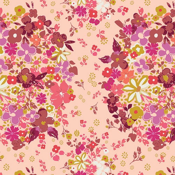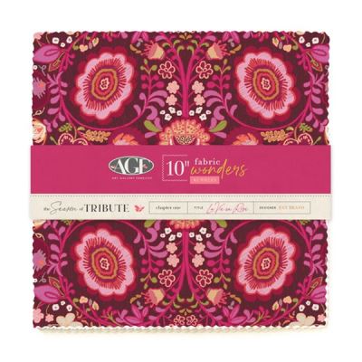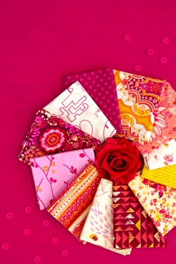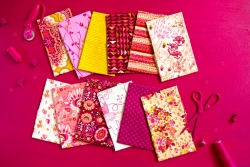 I denne Layercake finder du designeren Pat Bravo’s forkærlighed for pink. De forskellige stoffer indeholder hver især forskellige nuancerer af pink og beskriver designerens fortælling om en roses liv.